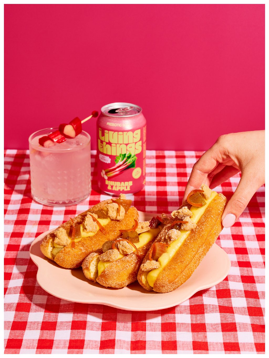 Sparkling water, chicory root inulin (2.4%), 9.7% fruit juices from concentrate (9.2 % white grape juice , 0.5% apple juice), natural flavouring, natural rhubarb flavouring, acid( malic acid), lactic acid bacillus.